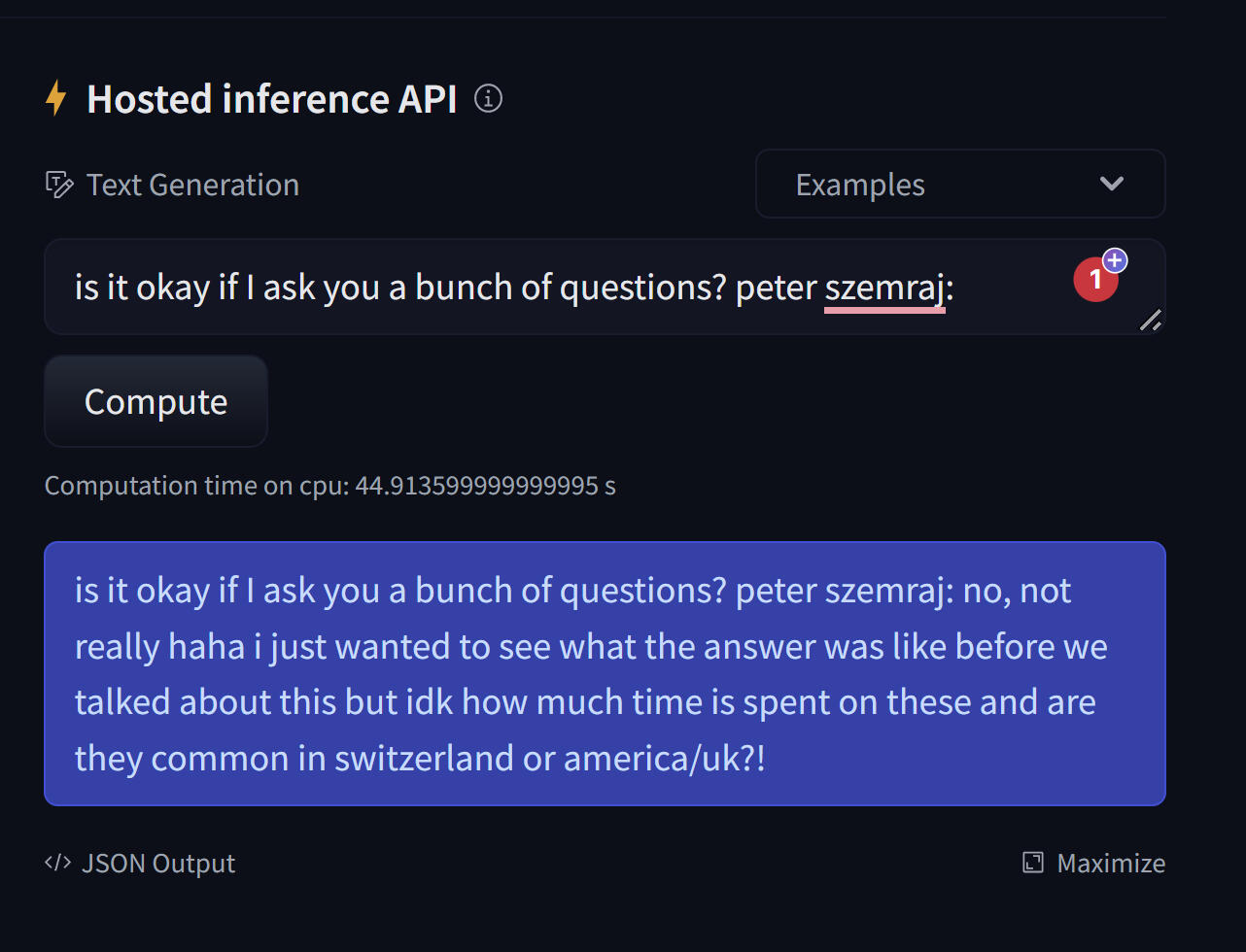 If telegram doesn't work for your use case, you can interact with the model through a simple API interface on the huggingface site.